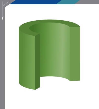 White thermoplastic called POM (Copolymer based on methylenoxide), commercially known as Delrin®. This material is used, among other applications, for wear guides in composite seals. Very hard material, not coated. Resistant to mineral oils, HFC, HFD-U, HETG, cold water, and diluted acids. Download Technical Sheet